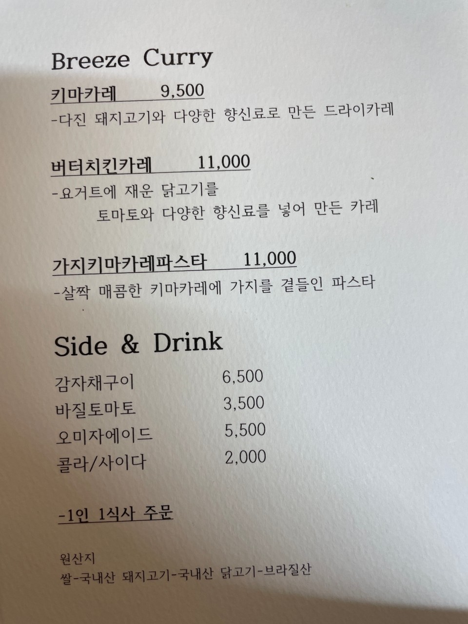 대흥동에 위치한 '브리즈커리'를 포스팅해볼게요